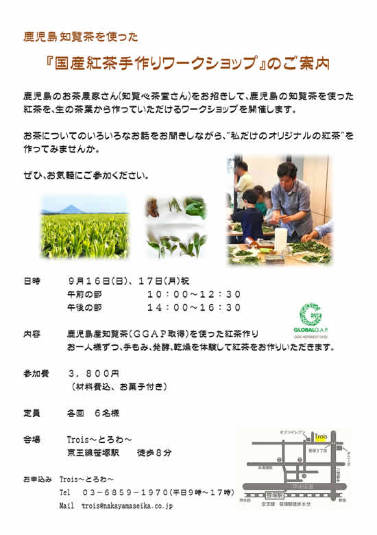 ワークショップでは、知覧から無肥料・無農薬の紅茶用茶葉を持ち込みますよ~